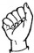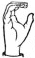 На ћирилици написано САНДРА МРЂА састоји се из 10 слова [?]. Исписано ћириличном једноручном азбуком за глувонеме: